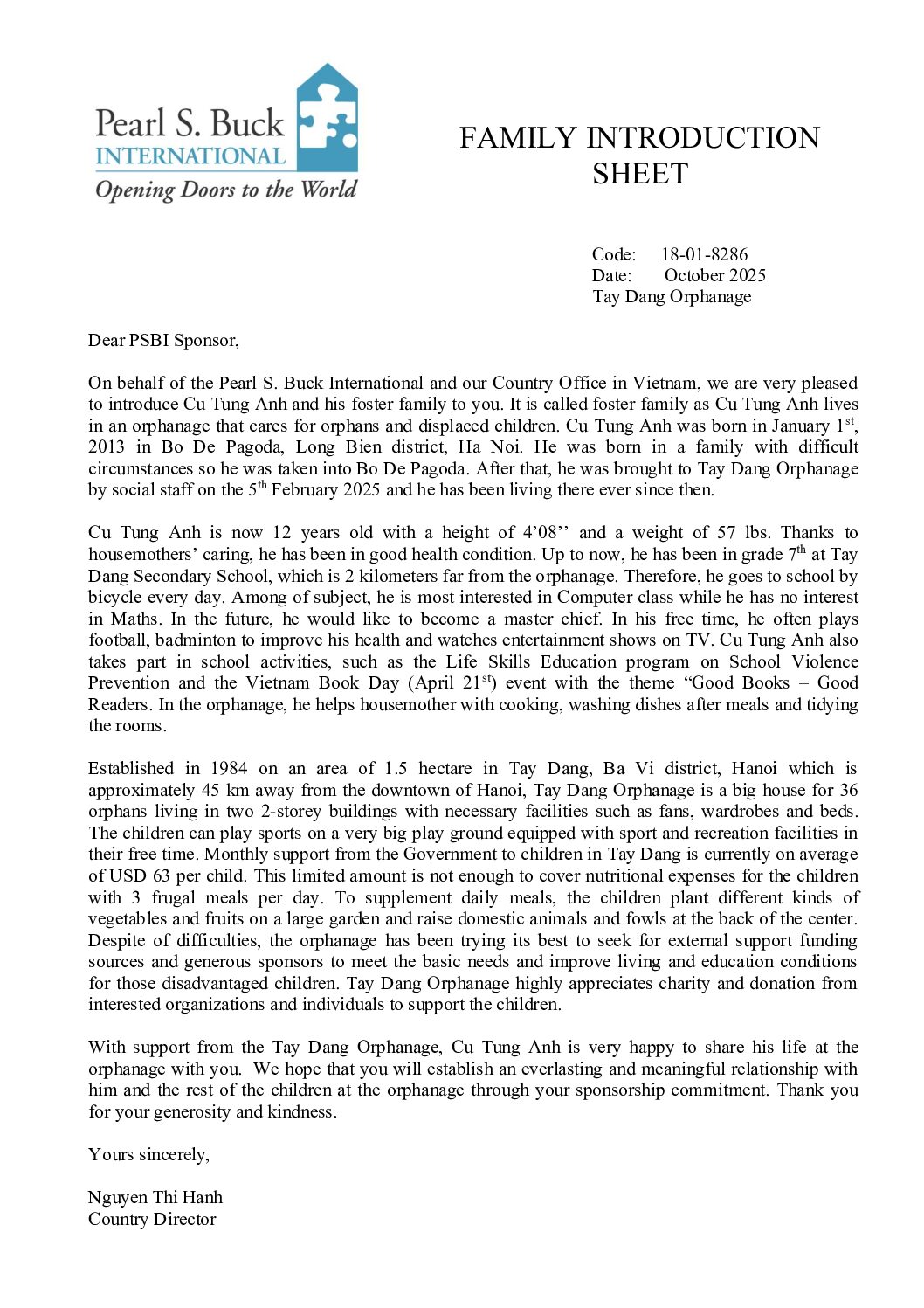 Caring and compassionate people can make a positive difference in the world through their generous, tax-deductible donations, which support the work of Pearl S. Buck International in bridging cultures and changing lives.